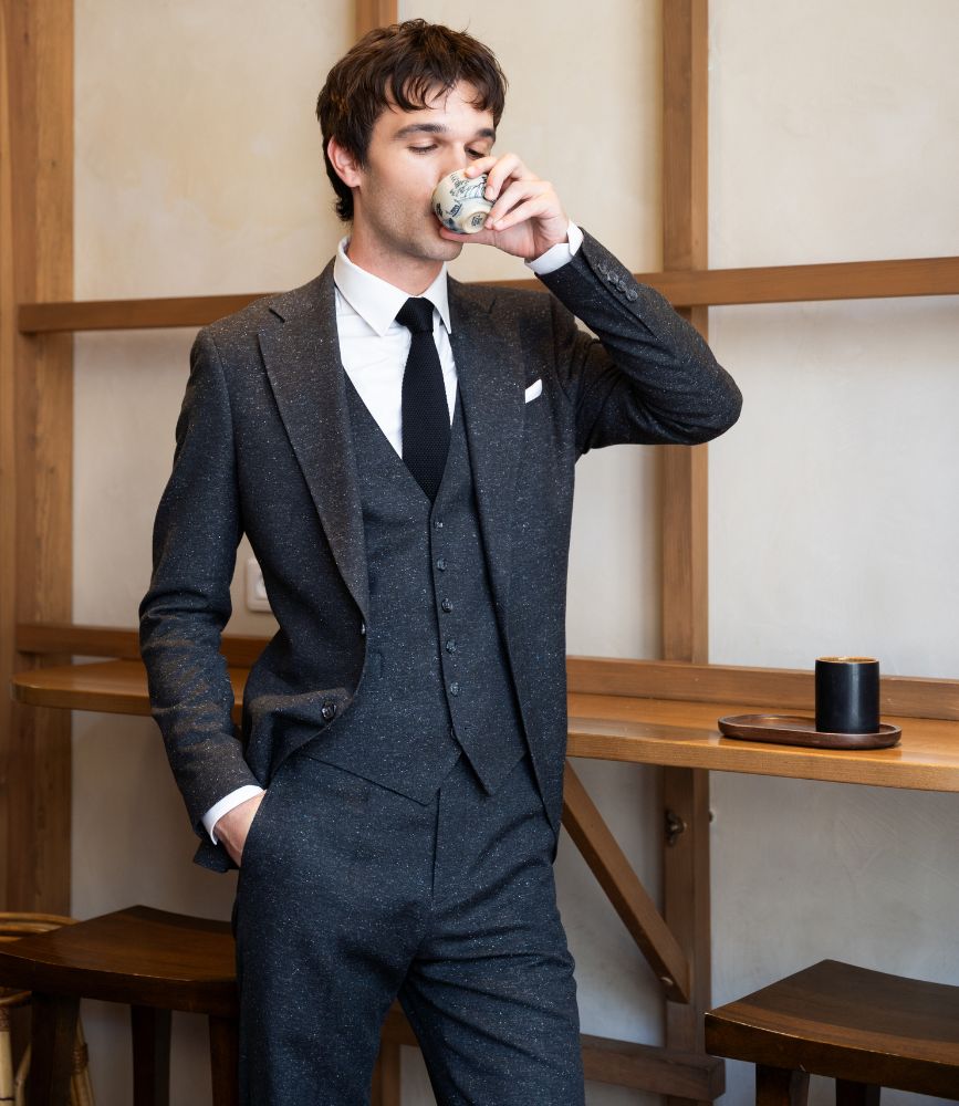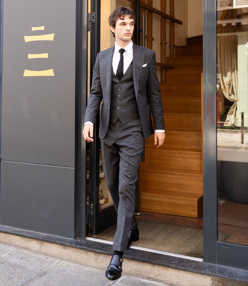 Costume anthracite en tweed léger