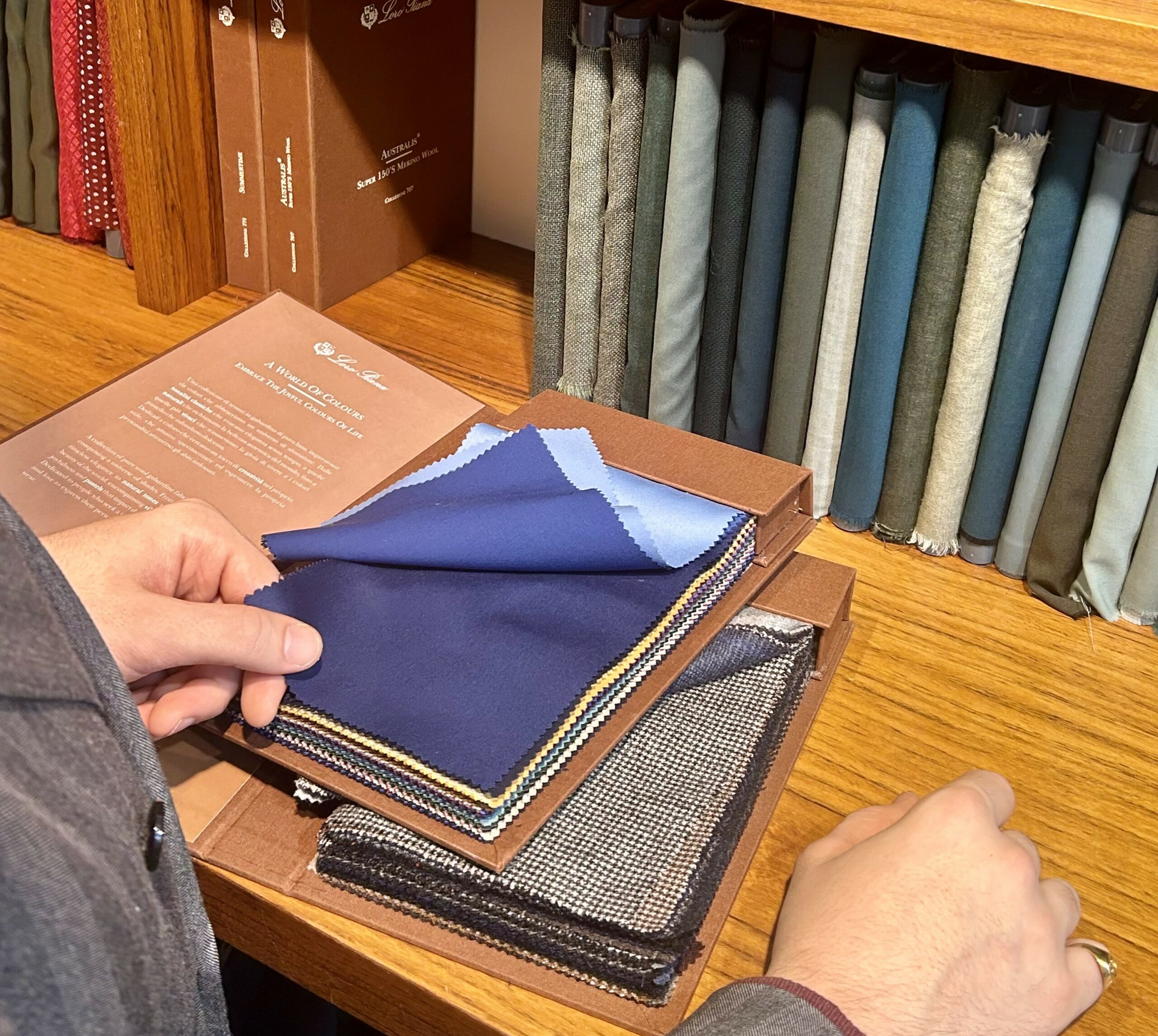 Grâce à cette collaboration, nous proposons désormais une sélection exclusive de tissus Loro Piana pour vos costumes, vestes et pantalons.